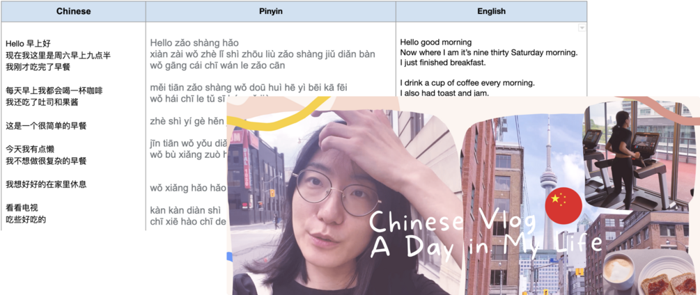 (Free Download) Chinese Vlog Transcript - A Day in My Life with pinyin, Chinese and English texts